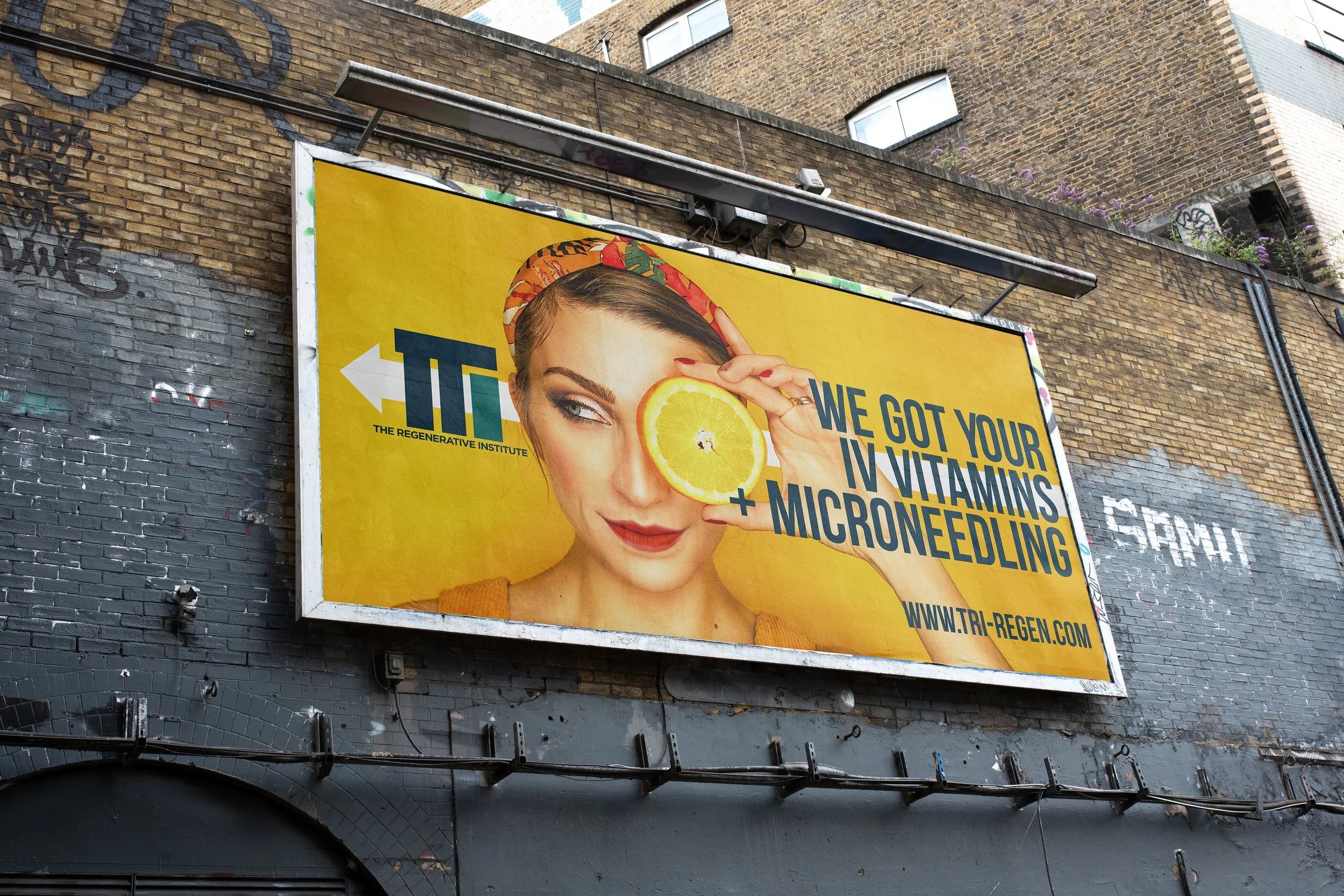 TRI (for short) is a very hip, so clean and modern, sports rehab medicine clinic and medspa. It’s got the best vibe! The branding needed to represent the trust and clarity of medicine but also we get to have lots of fun with other elements of the branding, i.e. the billboard.