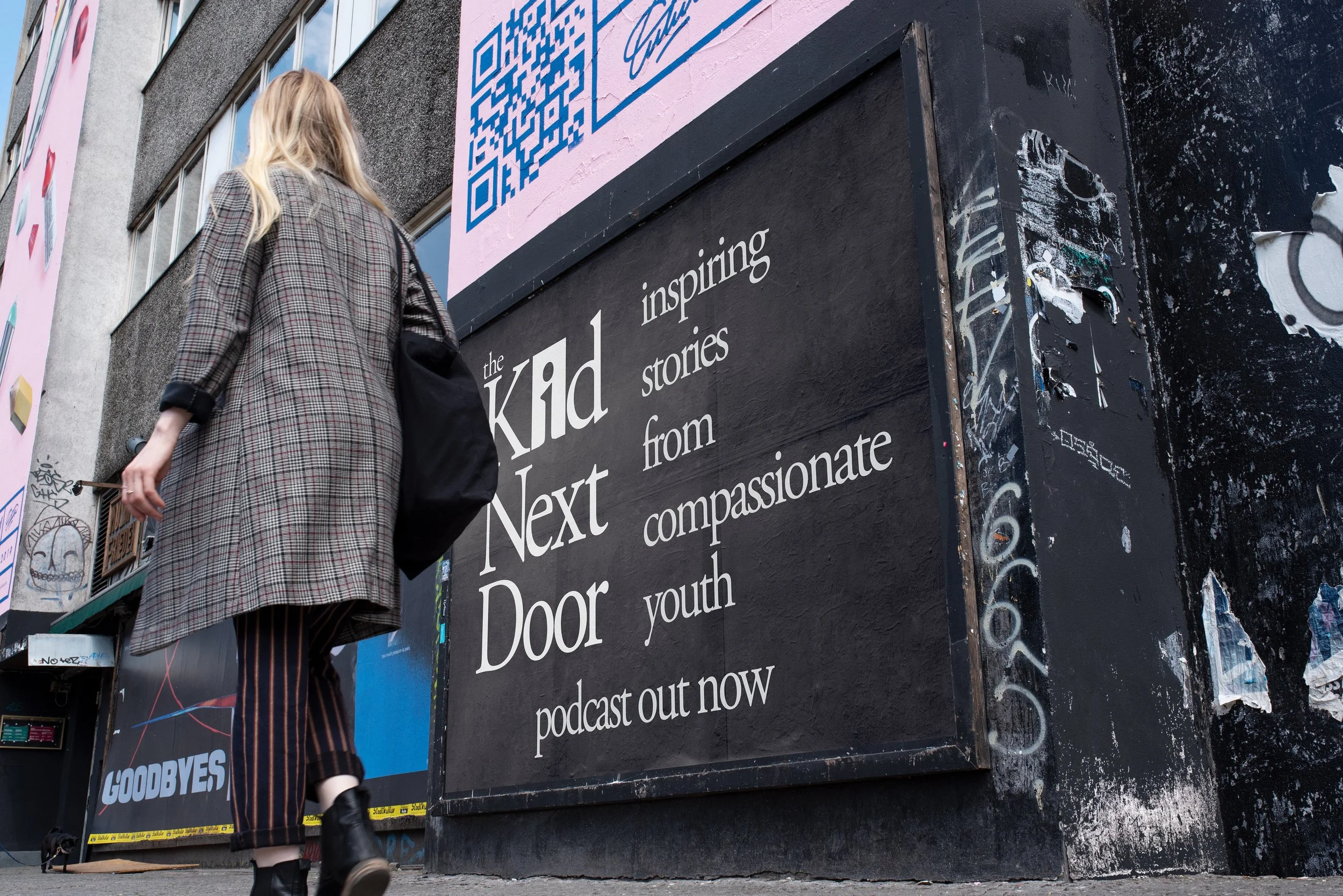 We wanted something big and bold on a podcast - we did black and white and all kinds of 80’s vibes of colors - and a big ass font to be read when it’s small and just that kid standing in the door waiting to be let into your headphones and your heart.